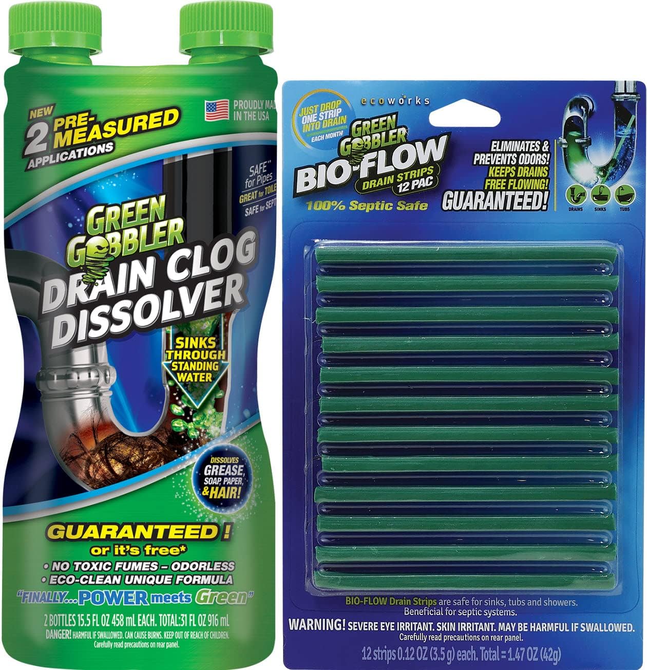 Amazon Com Green Gobbler Liquid Hair Drain Clog Remover For Toilets Sinks Tubs Bio Flow Drain Strips 12 Pack Cleaner Deodorizer Health Household